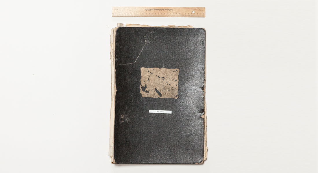 Vorzustand: Bei diesem großen, mit Pappdeckeln eingebundenen Buch lagen zahlreiche Schäden vor. Die Deckel waren verbogen und sehr abgenutzt. Die innen eingebundenen Flurkarten waren zahlreich gelöst und vor allem an den Rändern sehr stark eingerissen. Durch die dicke Leimschicht im Rückenbereich waren die Blätter außerdem sehr verwellt.